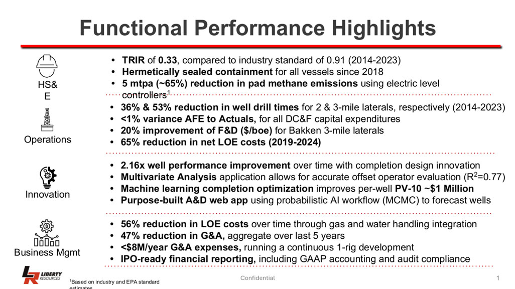 We have consistently generated superior production results applying our completions expertise to maximize production and economic recovery. The founders of Liberty are recognized as global experts in hydraulic fracturing technologies, and the Liberty team has used its technological edge together with strict financial discipline to achieve outsized economic returns for its investors.